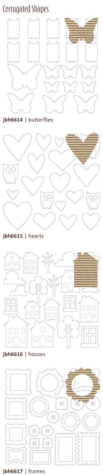 A primeira delas é os die-cuts em forma de cartão ondulado da Jillibean Soup que eu simplesmente descobrir-me apaixona. Aliás, a Jillibean Soup foi o fabricante que descobri-me apaixonada neste lançamento. Já tive oportunidade de conhecer a qualidade dos seus papéis e corrugated shapes, e estes novos lançamentos é mesmo um MUST HAVE.
