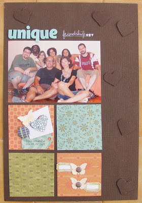 Aqui nesta página que eu fiz com o sketch do Studio Calico, eu coloque alguns corações que fiz com o furador da Marta Stewart.